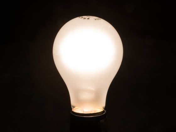 Satco brand 100 Watt, 130 Volt, left hand thread lamp design with brass medium screw base. Left hand thread bulbs are designed for work environments and theft protection.