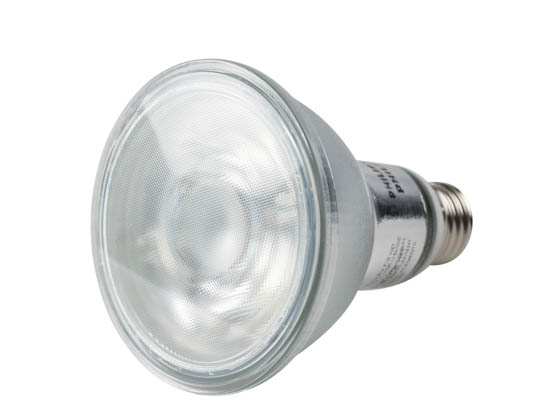 Philips dimmable 10 watt 2700K narrow flood PAR30/L LED bulb generates as much light as many 75 watt halogen bulbs.