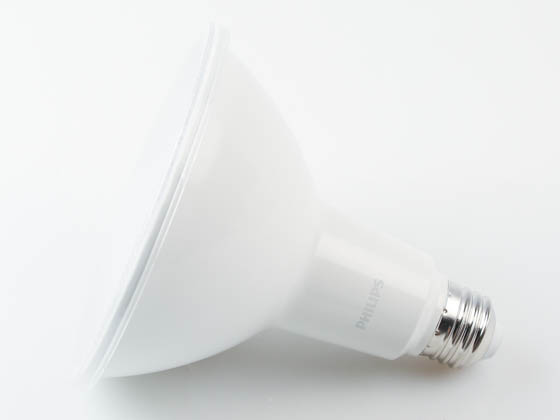 hilips dimmable 13W 3000K flood PAR38 LED bulb generates as much light as many 120 watt halogen bulbs.