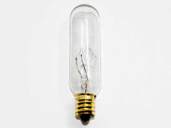 Philips brand T6 tubular sign lamp design with brass candelabra screw base. 15 Watts for lower light levels, 140-150 volts for much longer life and resistance to voltage fluctuations.