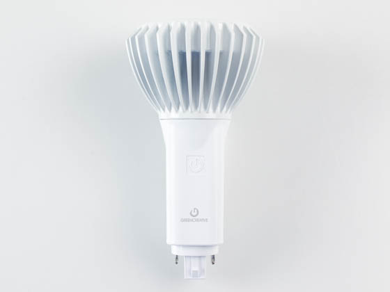 The 17 watt dimmable vertical mounted 4 pin G24q base LED lamp from Green Creative is a ballast compatible (plug 'n play) replacement for a 42 watt CFL with a 4-pin G24q or GX24q socket. Not for use in enclosed fixtures.