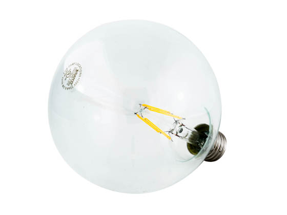 Satco dimmable Filament 6.5 watt G-40 LED bulb generates as much light as many 60 watt incandescent filament G-40 bulbs.
