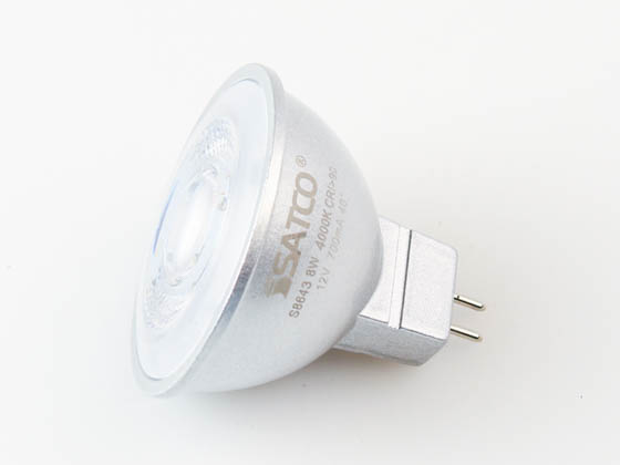 Satco Dimmable 8 Watt 4000K 40° MR16 LED Bulb, GU5.3 Base, Enclosed Rated, 90 CRI | 8MR16/LED/40'/40K/90CRI/12V | Bulbs.com